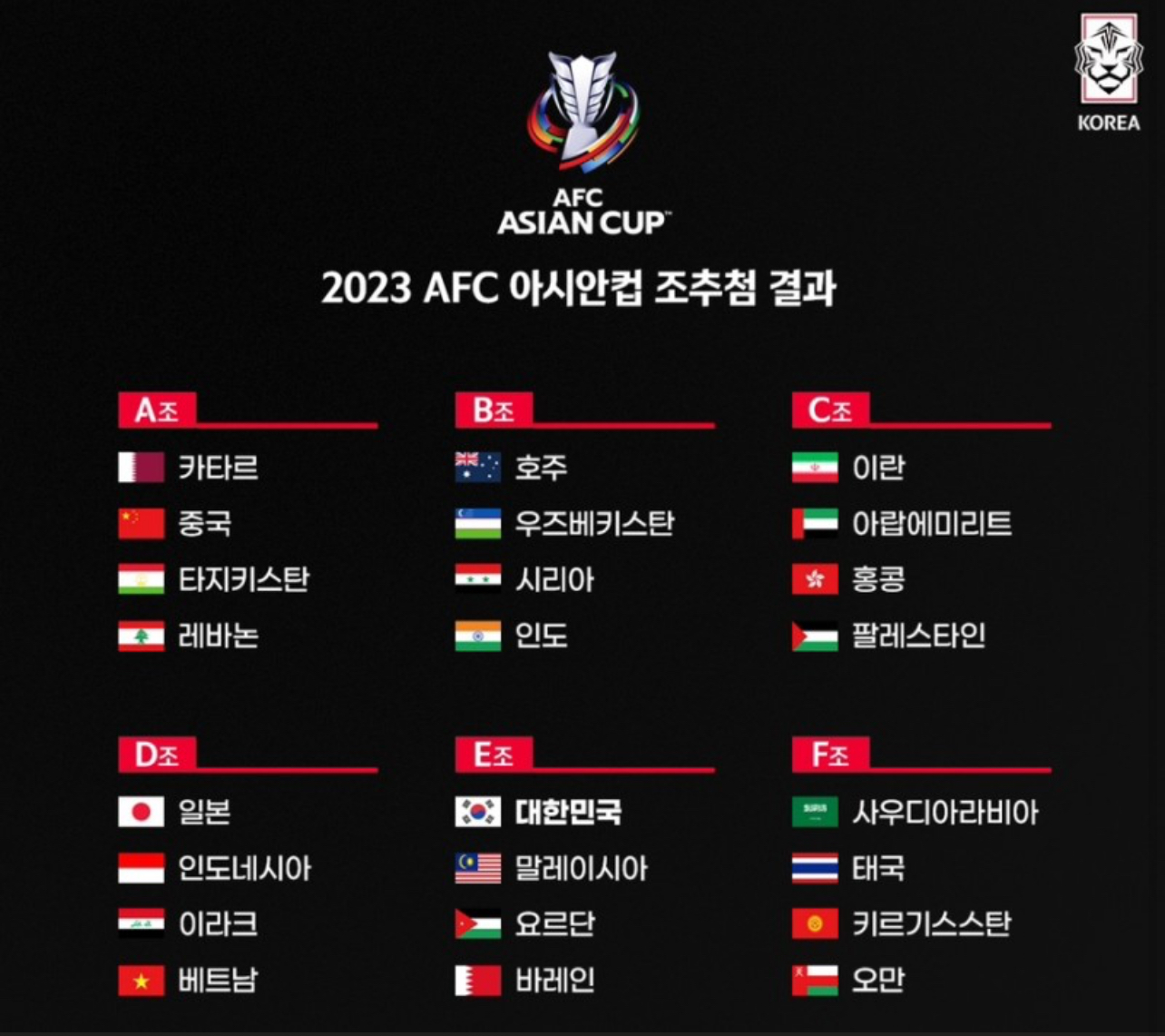 한국은 1월 20일 요르단과의 2차전 경기에서 조1위와 함께 16강 조기 확정을 노리긴 했지만 2-2 무승부를 기록하였습니다. 하지만 1월 24일 저녁8시 30분에 열렸던 일본과 인도네시아전 경기로 인해 한국은 16강 진출이 확정 되었습니다.