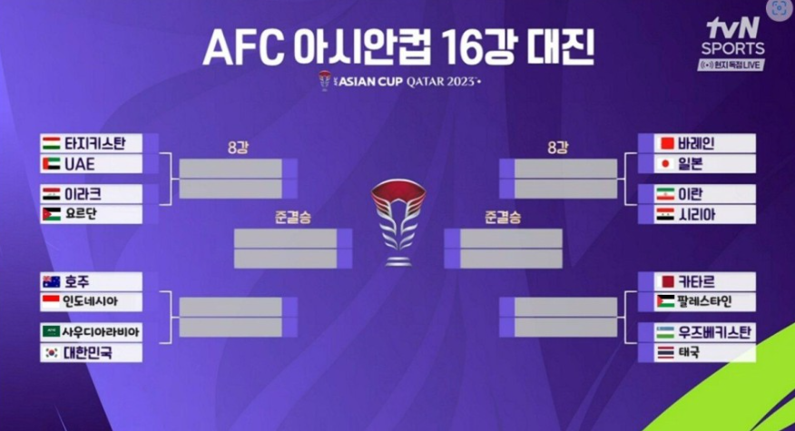 벤투호 UAE는 타지키스탄에 패하며 승부차기 끝에 탈락했고, 요르단은 후반 추가시간 5분과 7분 골을 터뜨리며 역전승을 거두며 8강에 오르는 엄청난 활약을 보여줬습니다. 물론 호주와 카타르가 쉽게 이겨 8강에 진출했습니다.